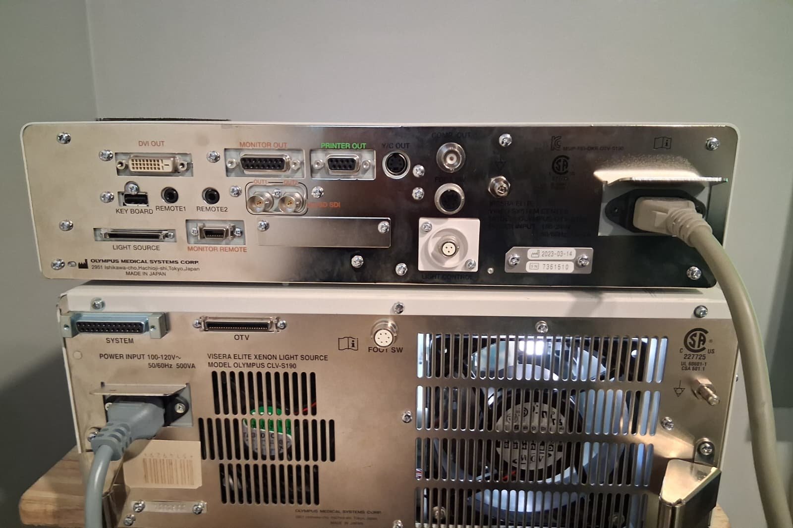 Olympus endoscopy system include: OTV-S190 VISERA ELITE VIDEO CLV-S190 VISERA XENON LIGHT SOURCE